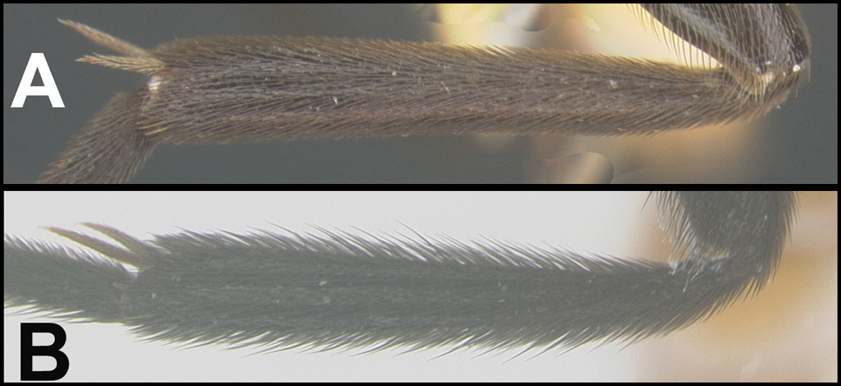 Diagnosis. Hind tibia strongly laterally compressed, very broad in profile with especially long setae. Metasomal tergum 2 with a midlongitudinal ridge.