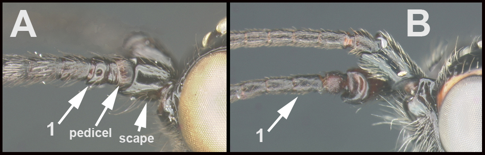 Diagnosis. Scape longer ventrally than dorsally (when antenna directed anteriorly); flagellum with white or cream-colored band near midlength. Basal flagellomere expanded ventrally.